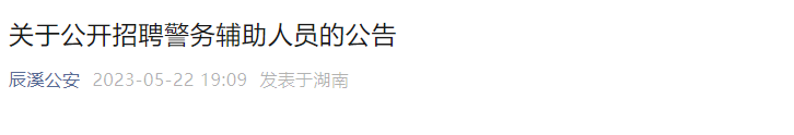 2023年湖南怀化辰溪县公安局招聘警务辅助人员公告(23人)05-25