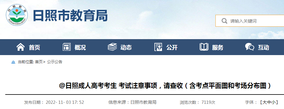 我院于11月2日发布了@日照市2022年成人高考考生考试最新疫情防控提示!请认真阅读,并重申如下内容: