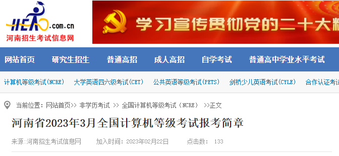 2023年3月河南计算机等级考试报名时间及报名网址入口[2日23日-3月3日]02-23