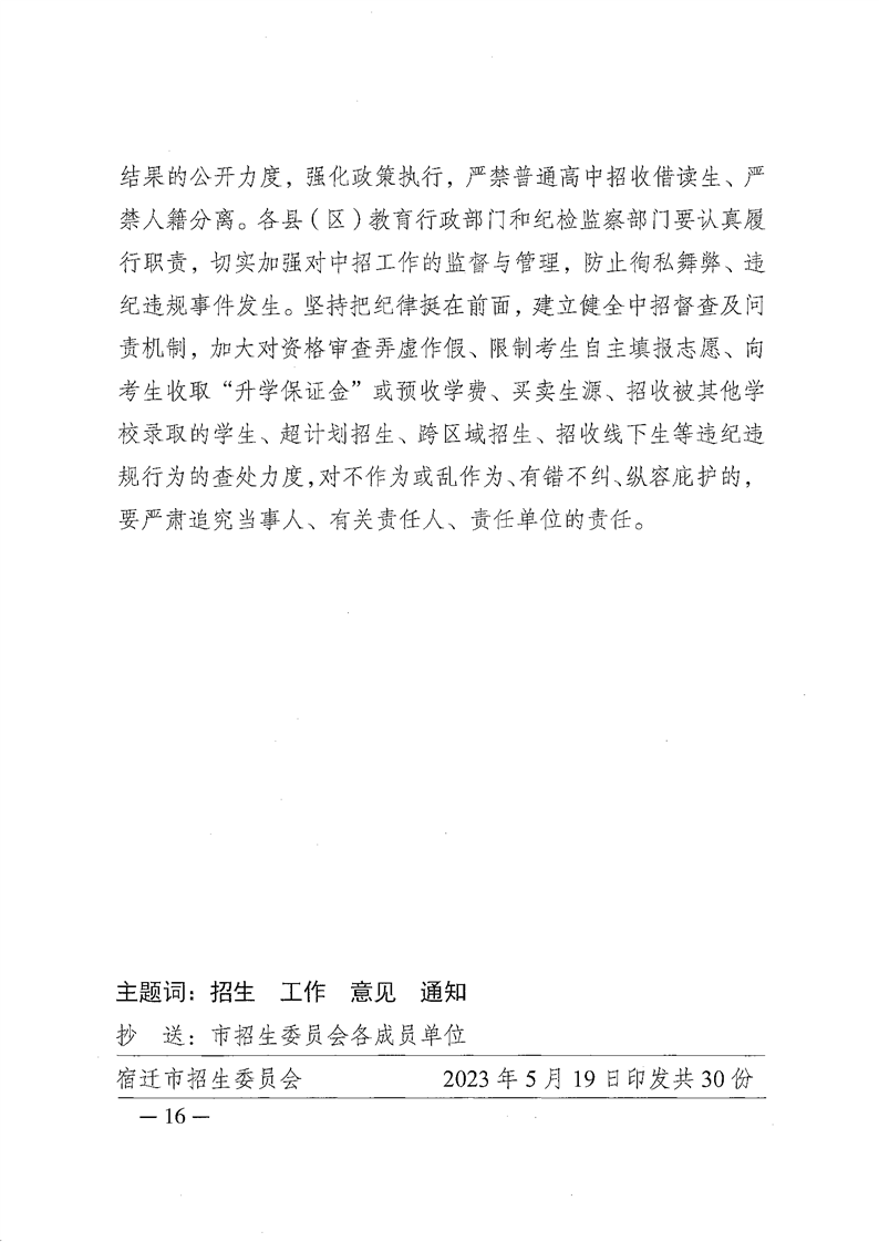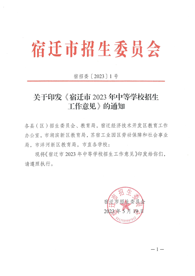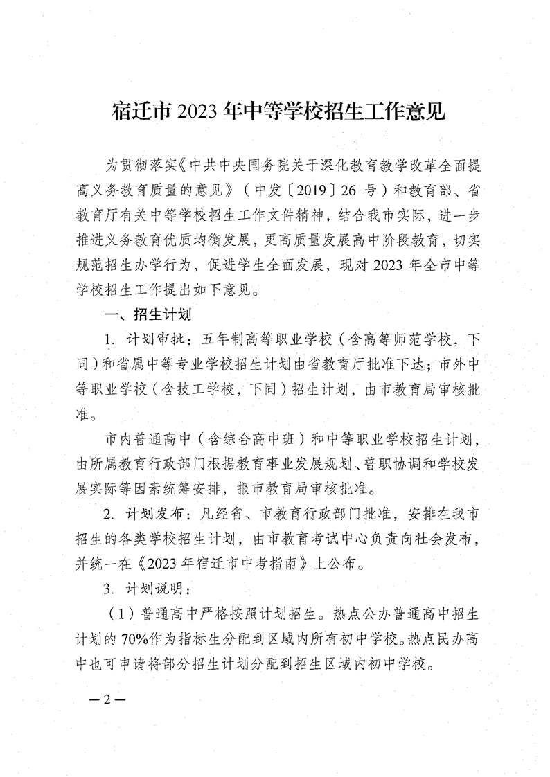 原文标题:关于印发《宿迁市2023年中等学校招生工作意见》的通知