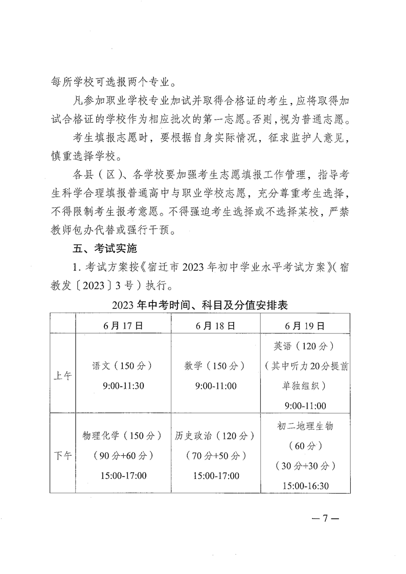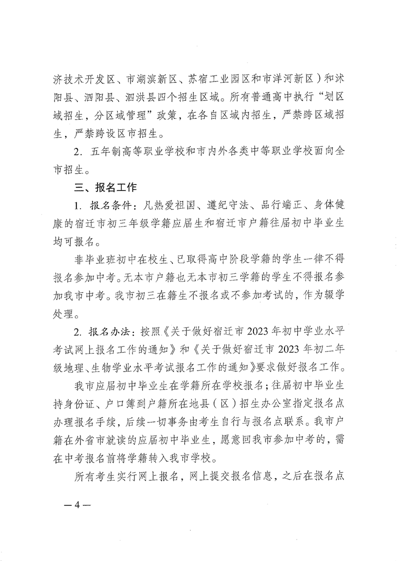 江苏宿迁2023年中等学校招生工作意见06-15