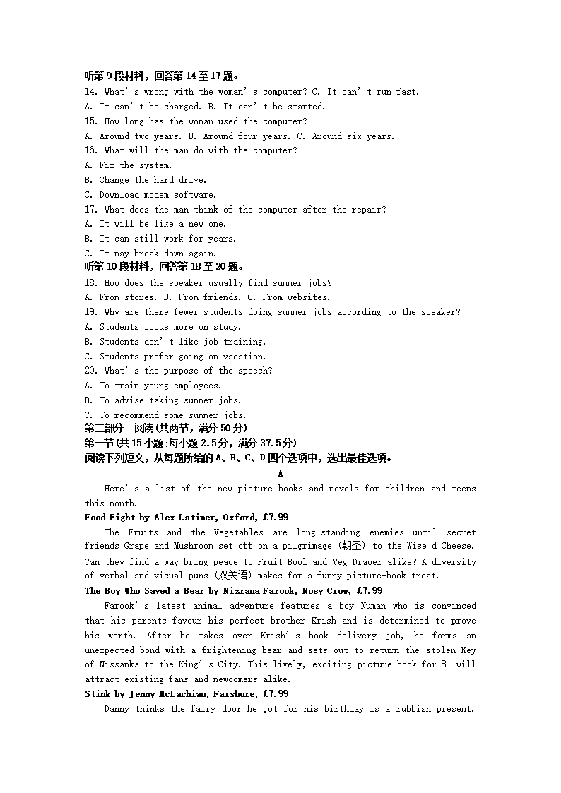 【文档预览】 文档大全网整理发布2022-2023年浙江温州高一英语下学期期末试卷及答案(Word版),前五页预览如下: