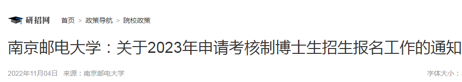 江苏:南京邮电大学关于2023年申请考核制博士生招生报名工作的通知11-09