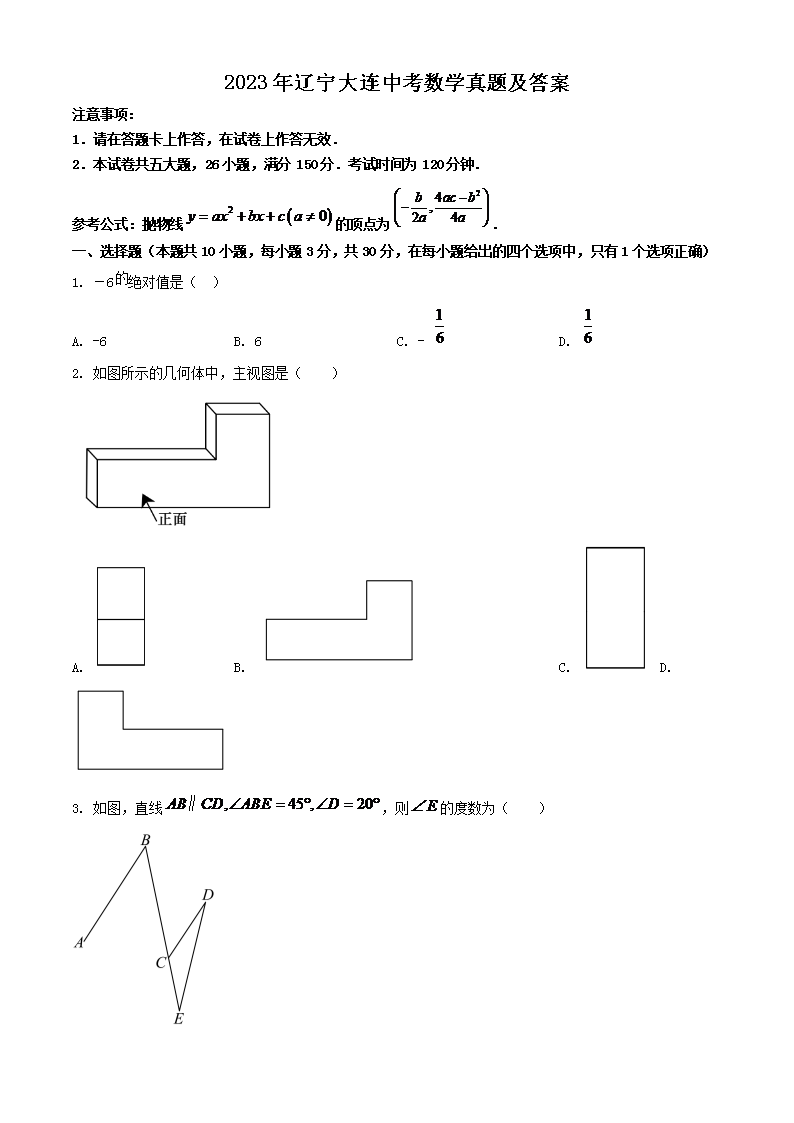 2023年辽宁大连中考数学真题及答案(Word版)06-29