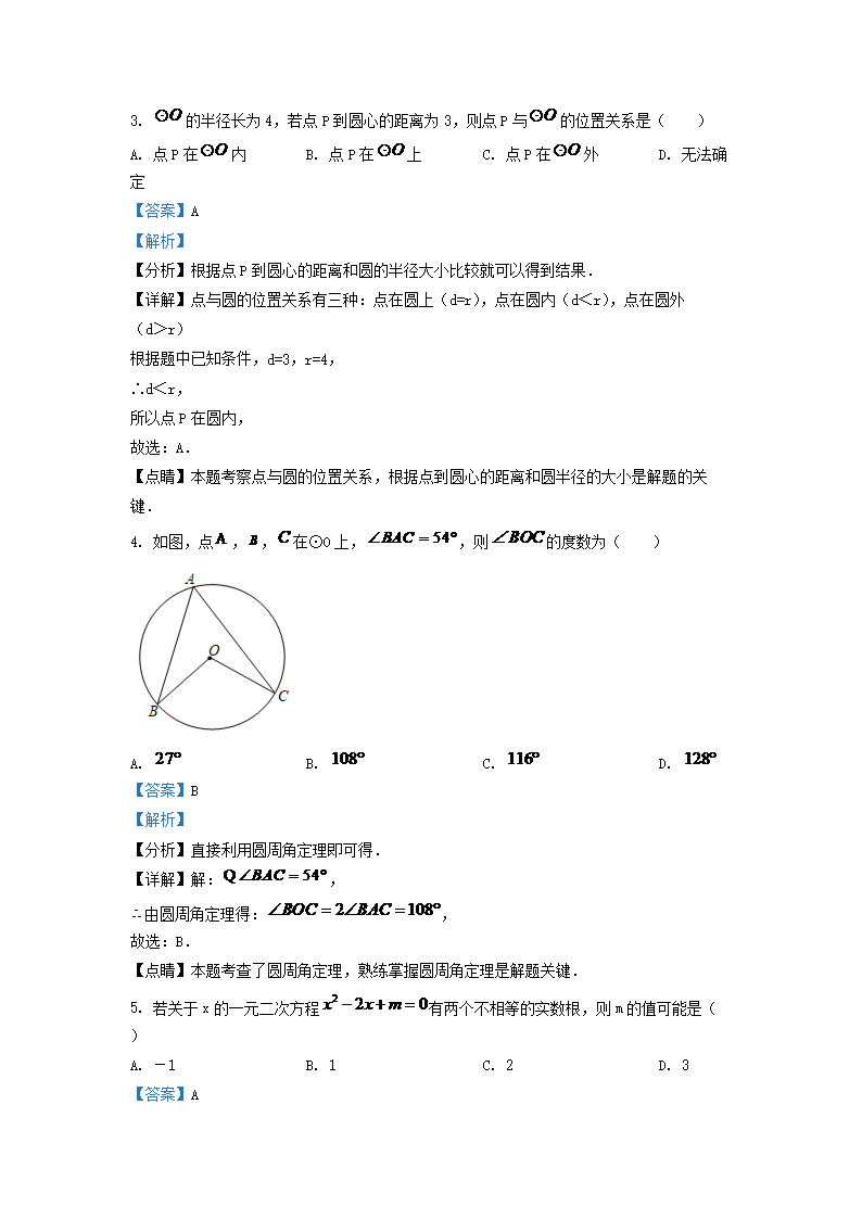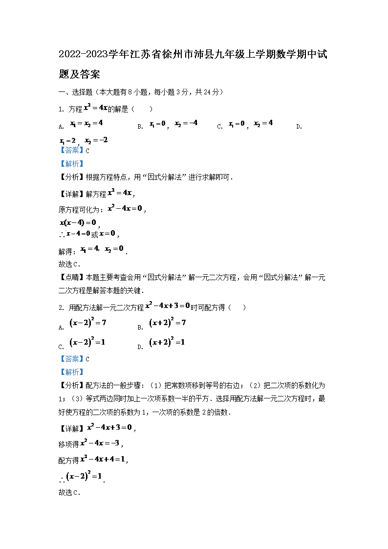 2022-2023学年江苏省徐州市沛县九年级上学期数学期中试题及答案(Word版)09-26