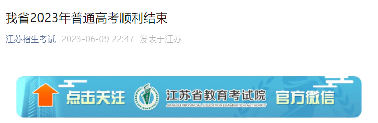 【#高考# 导语】©文档大全网从江苏招生考试公众号发布的《2023年江苏普通高考顺利结束》中获悉,2023年江苏高考打印成绩通知单时间:预计6月25日后,考后工作相关事宜如下: