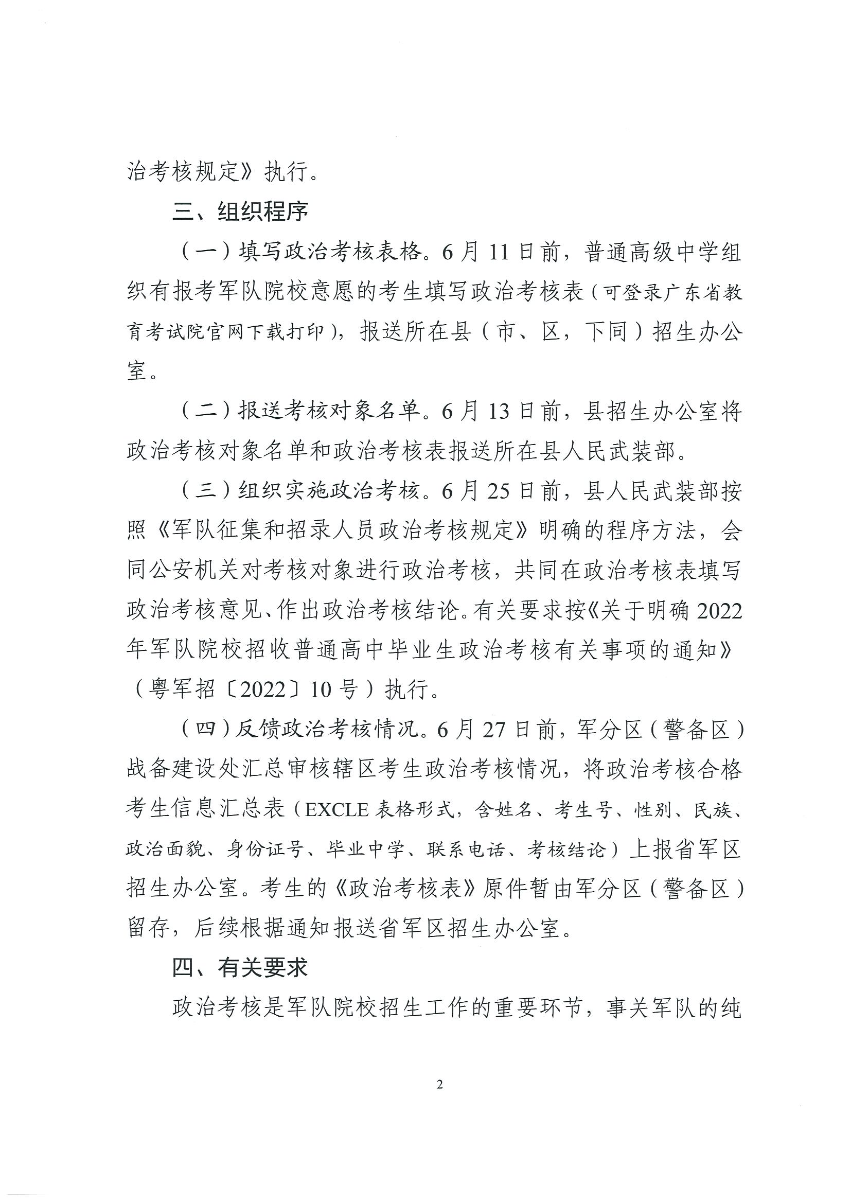 广东广州2023年军队院校招收普通高中毕业生政治考核工作的通知05-31