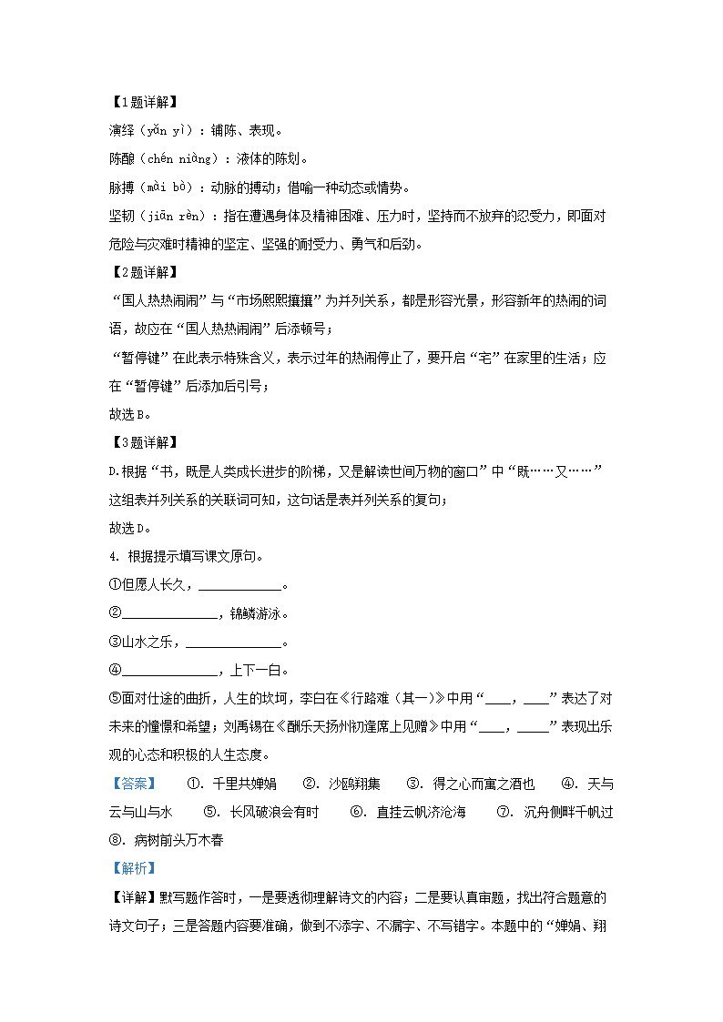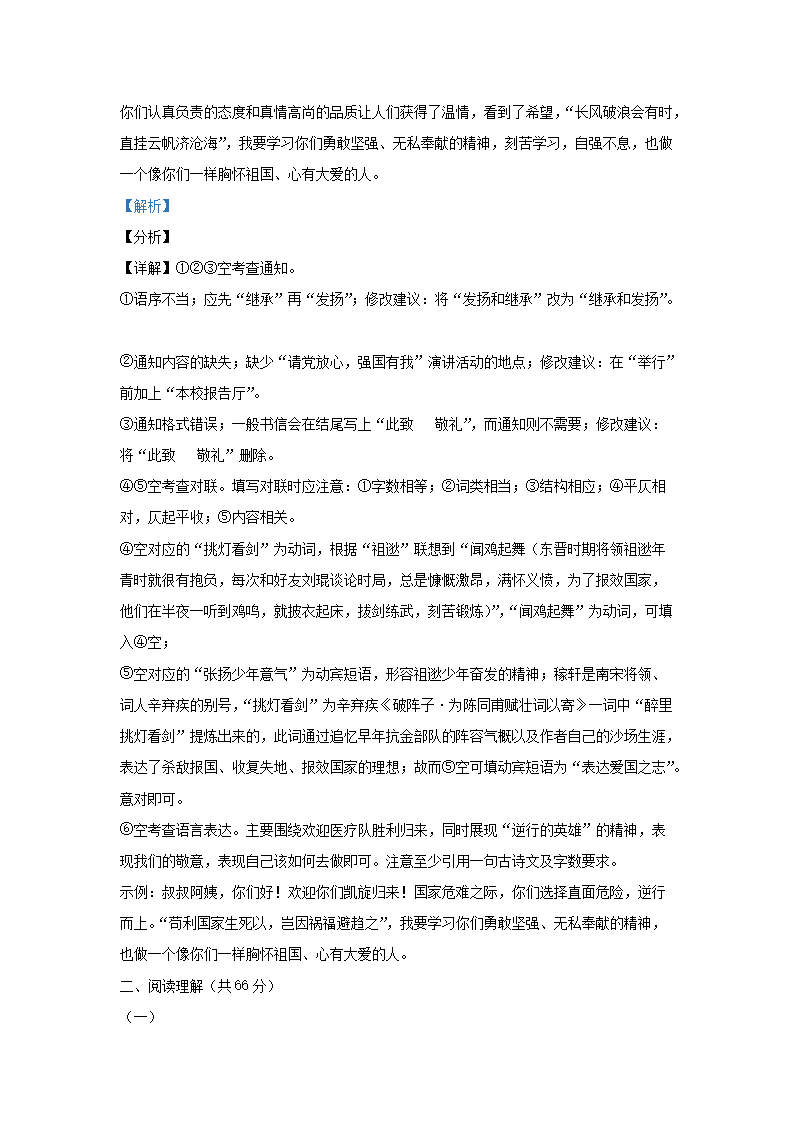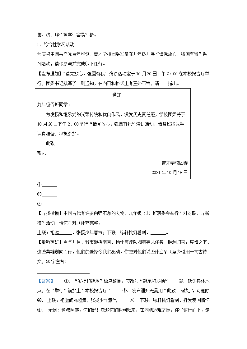 2021-2022学年江苏省泰州市姜堰区九年级上学期语文期中试题及答案(Word版)09-09