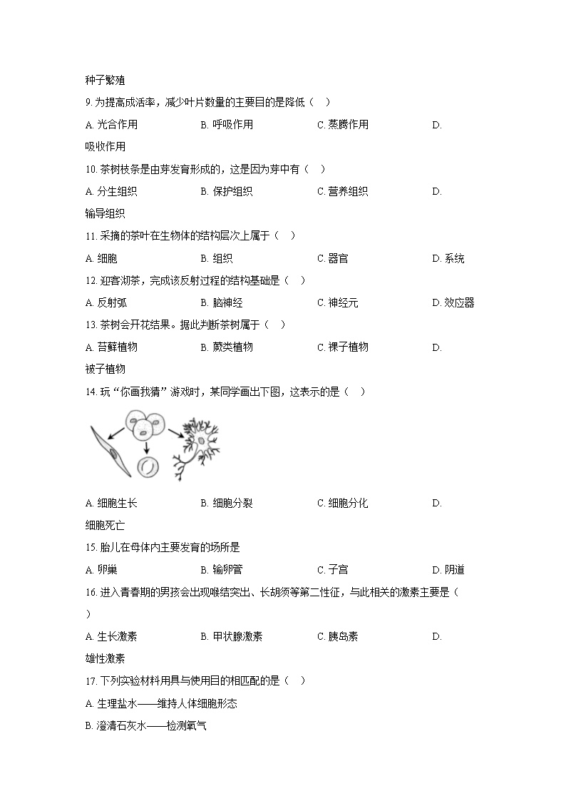 2023年福建南平中考生物真题及答案(Word版)07-14