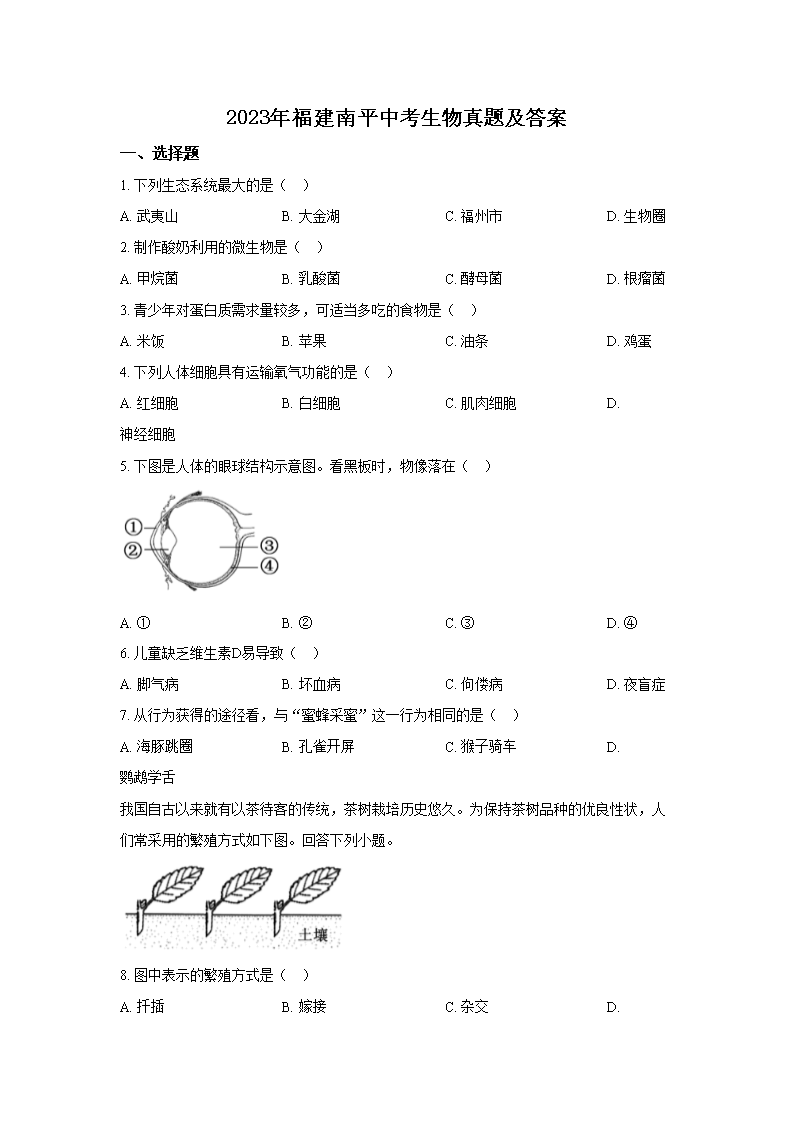 【文档预览】 文档大全网整理发布2023年福建南平中考生物真题及答案(Word版),前五页预览如下:
