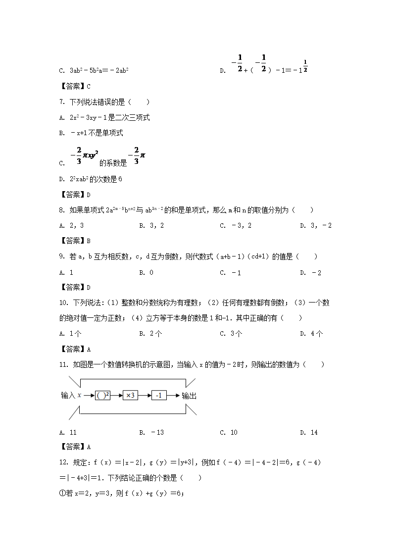 【文档预览】 文档大全网整理发布2020-2021学年广东深圳龙岗区七年级上册期中数学试卷及答案(Word版),前五页预览如下: