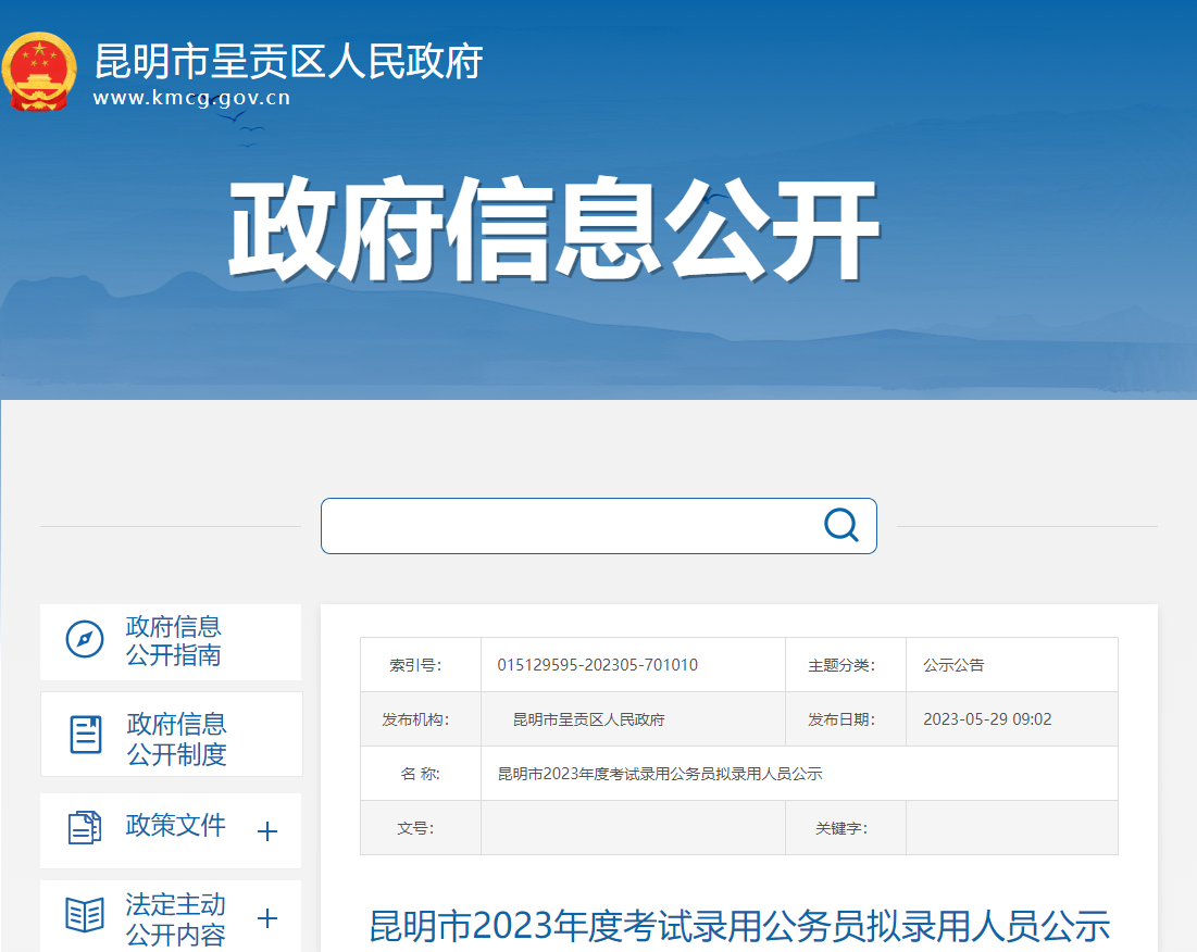 2023年云南昆明市考试录用公务员拟录用人员公示时间:5月26日-6月1日05-30