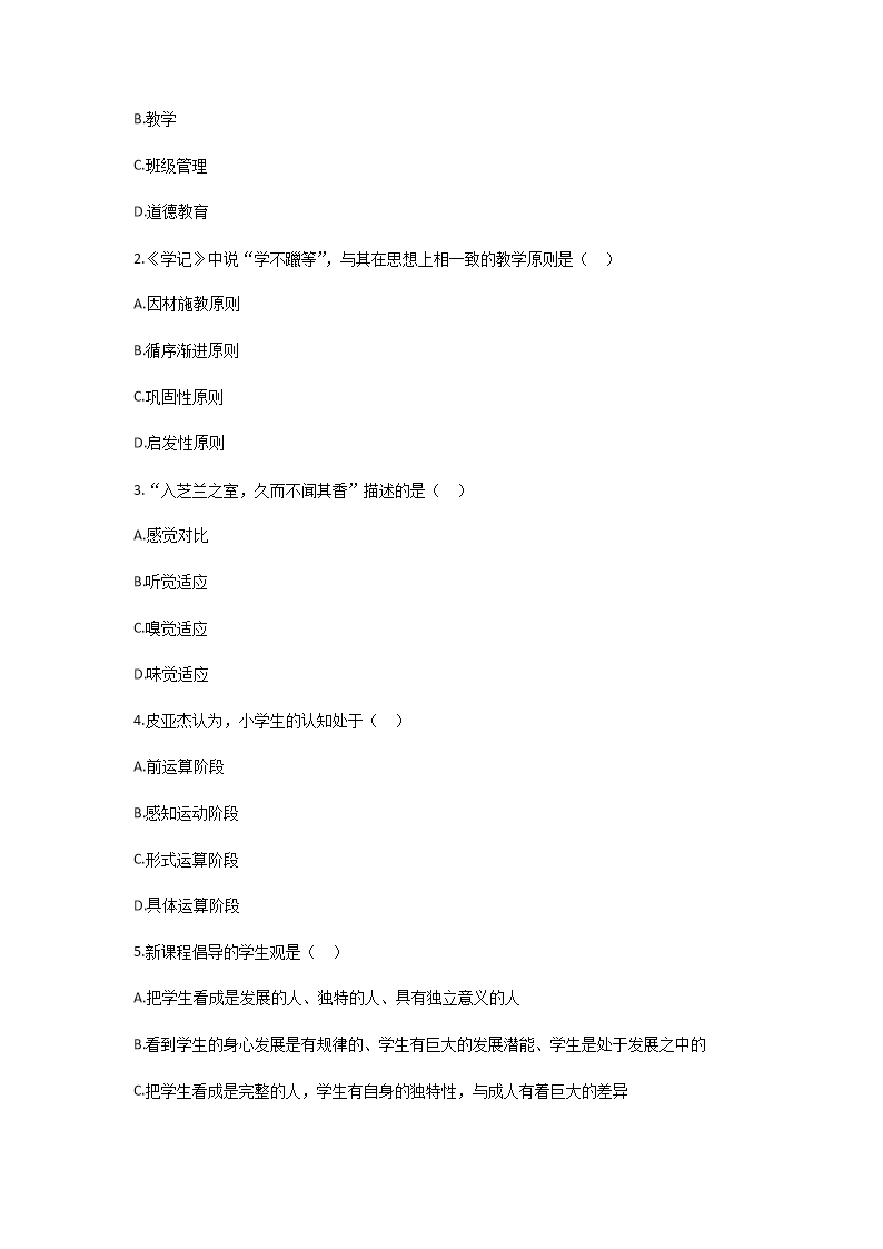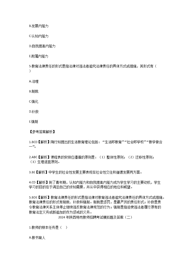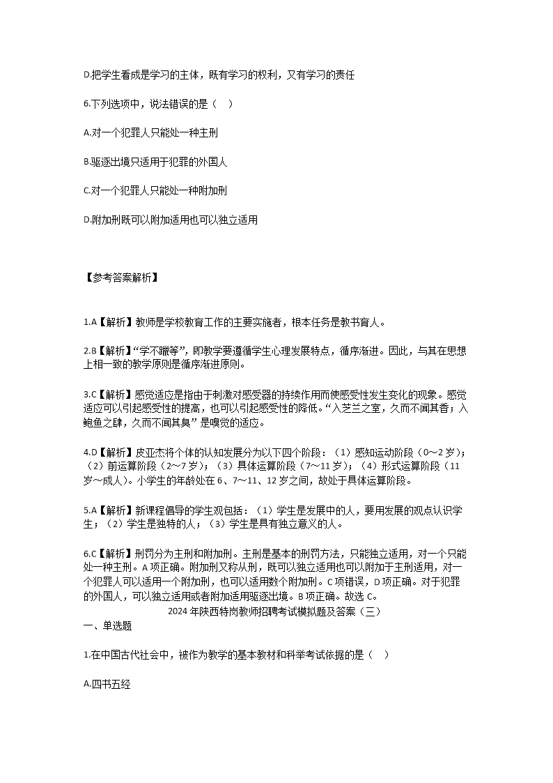 2024年陕西特岗教师招聘考试模拟题及答案(Word版)10-20