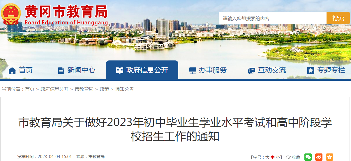 湖北黄冈2023年初中毕业生学业水平考试和高中阶段学校招生工作的通知04-07