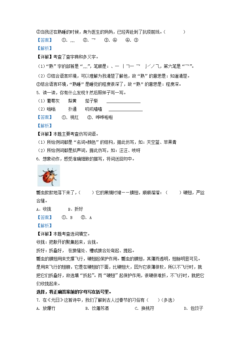 2021-2022学年北京市顺义区部编版三年级下册期末考试语文试卷及答案(Word版)06-30