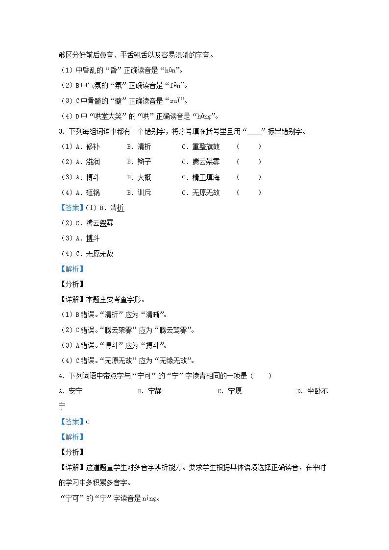 2020-2021学年北京西城四年级上学期期末语文真题及答案(Word版)06-30