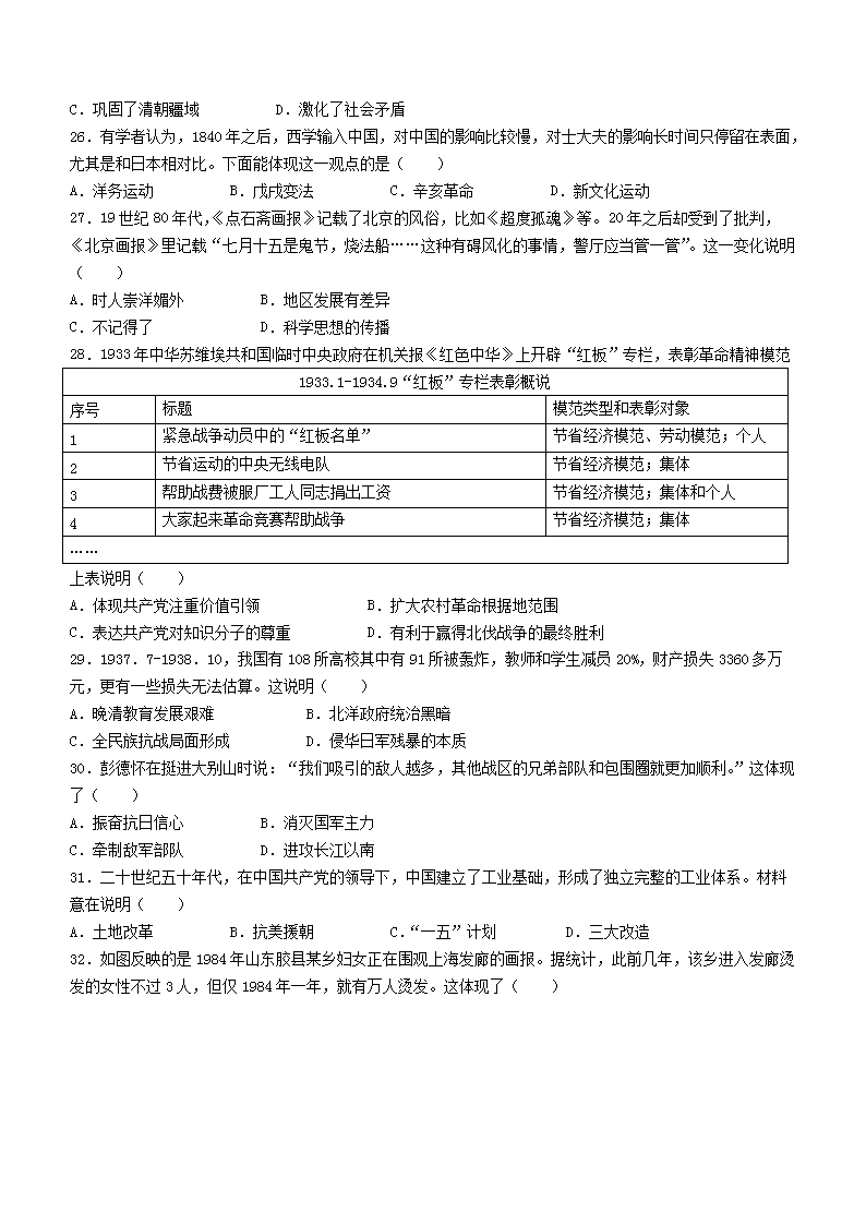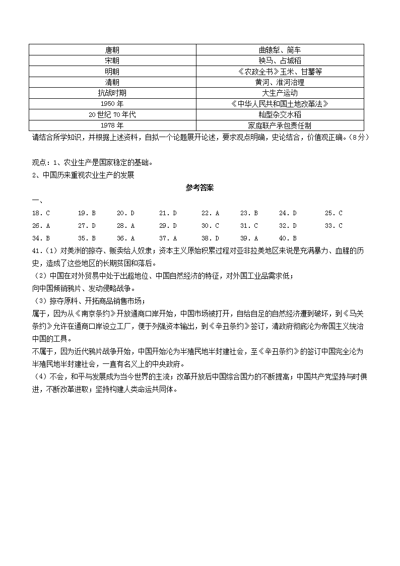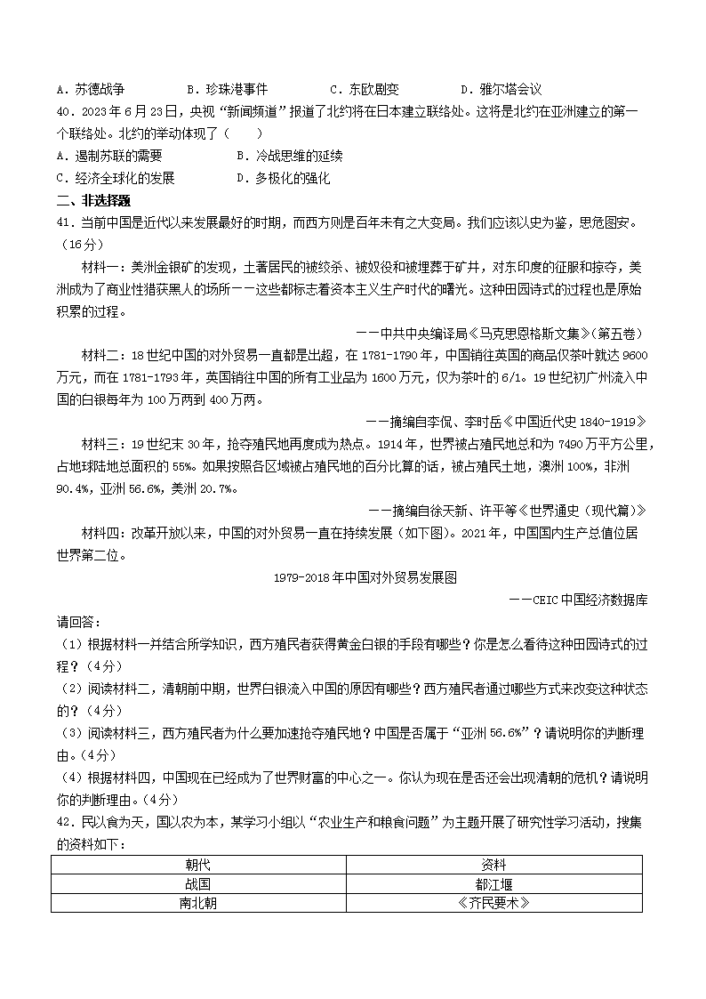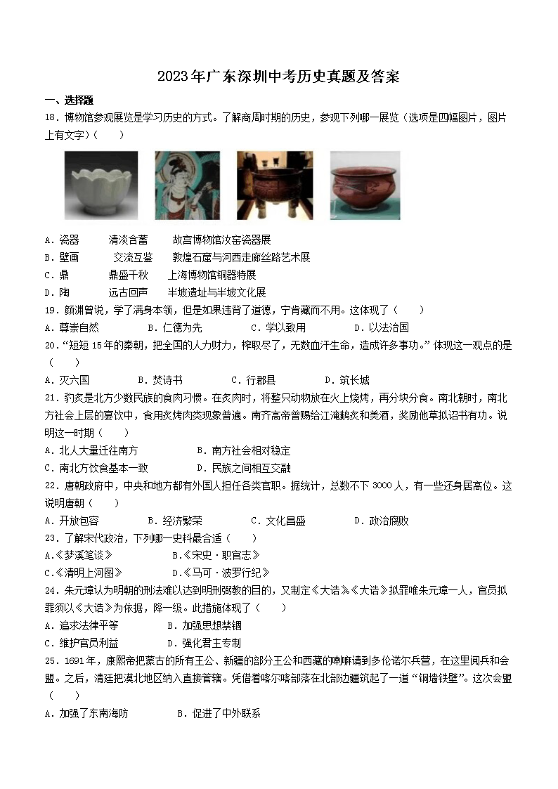 2023年广东深圳中考历史真题及答案(Word版)07-05