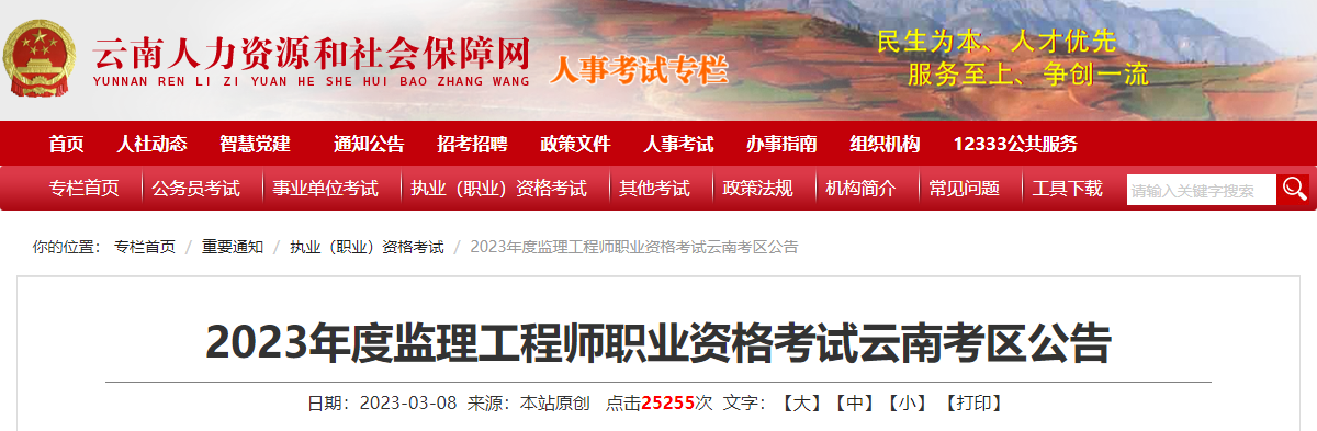 原文标题:2023年度监理工程师职业资格考试云南考区公告