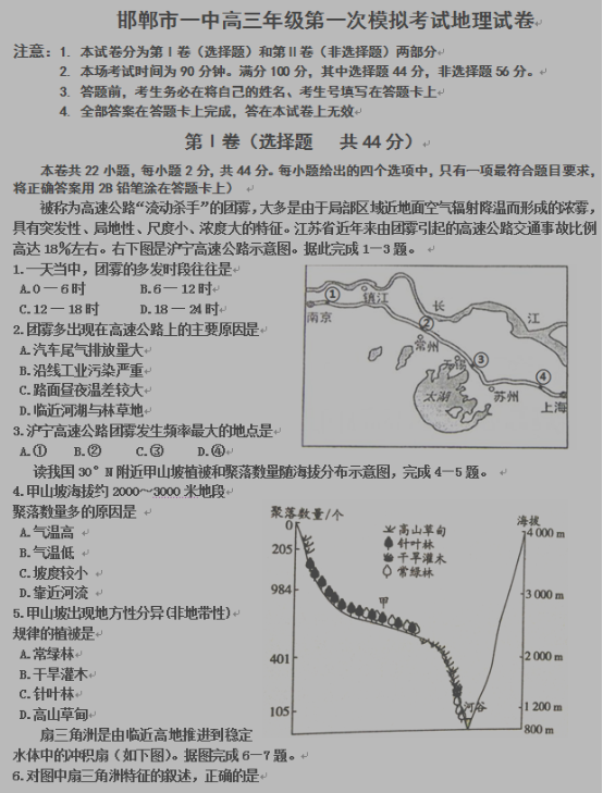 河北2017届高三五个一联盟上学期第一次模拟考试地理试卷05-06