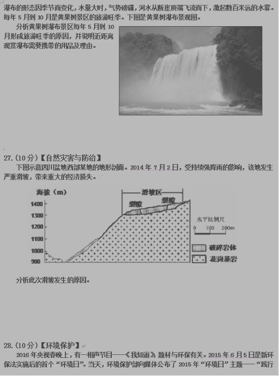 用品:雨伞、雨衣等雨具(2分);理由:近距离观赏瀑布时会受到水雾的影响(2分)。