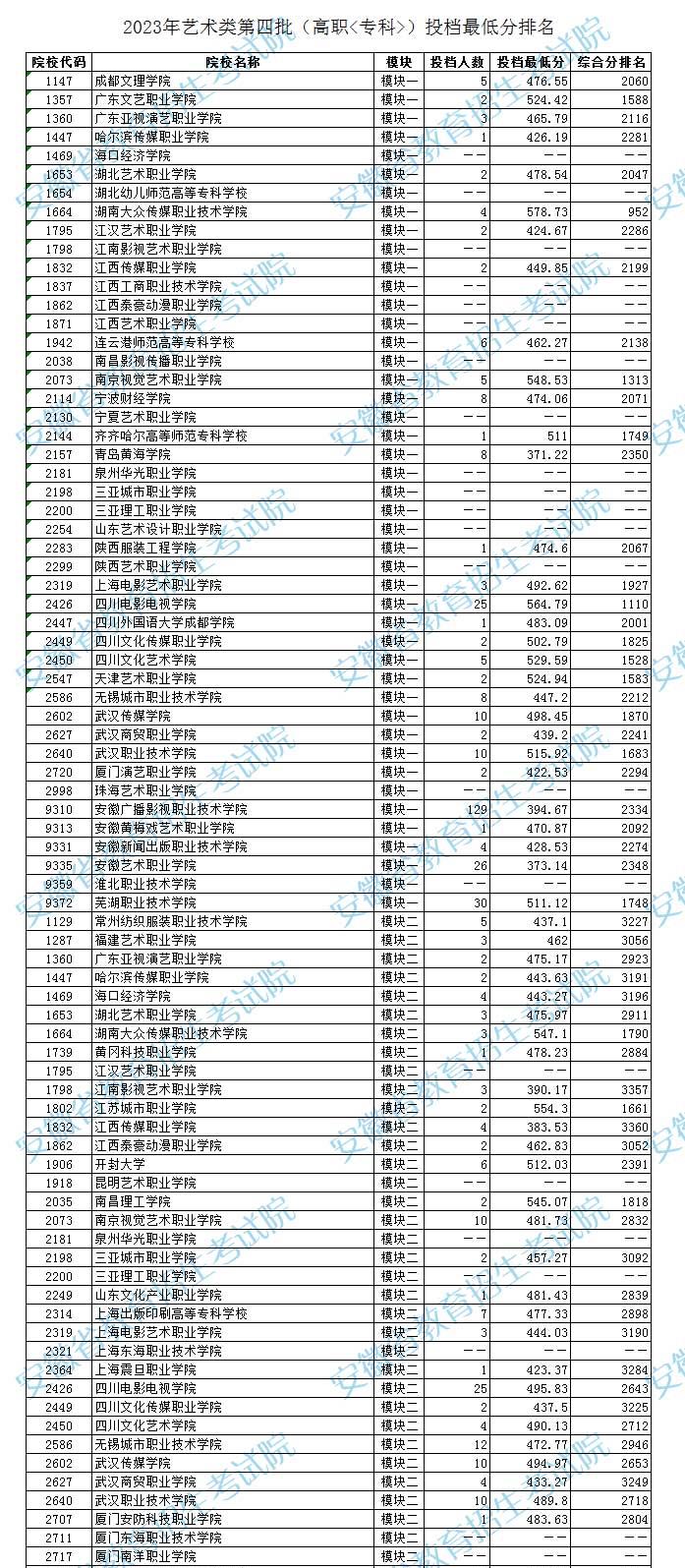 2023年安徽高考艺术类第四批高职(专科)投档最低分及排名公布08-04