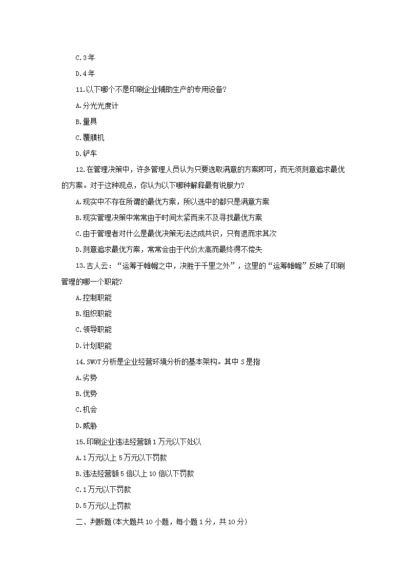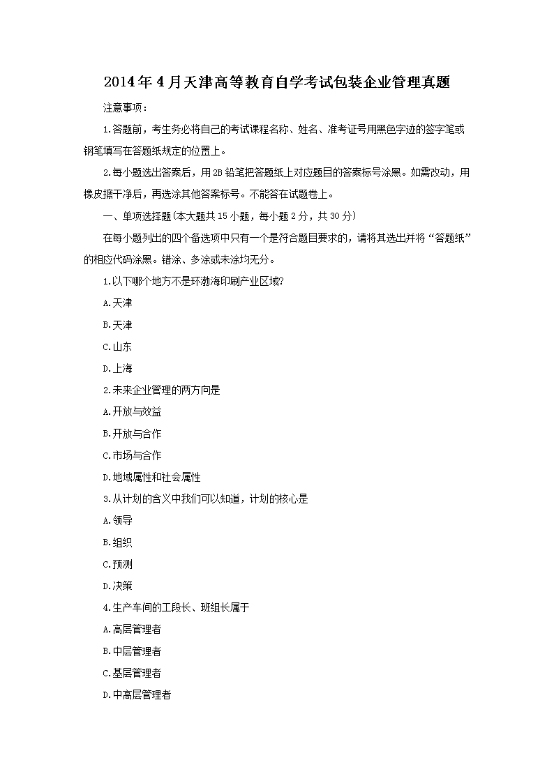 2014年4月天津高等教育自学考试包装企业管理真题(Word版)06-01