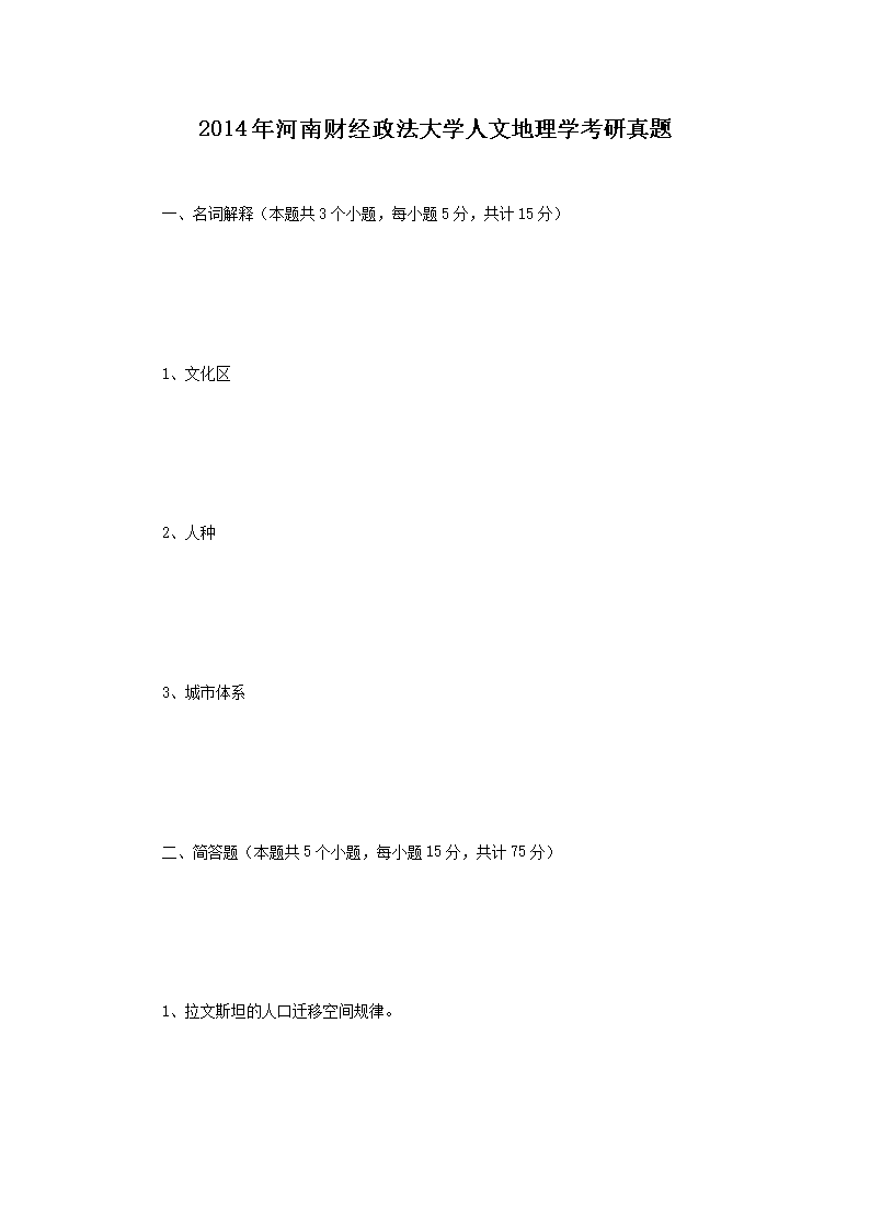 2014年河南财经政法大学人文地理学考研真题(Word版)06-20