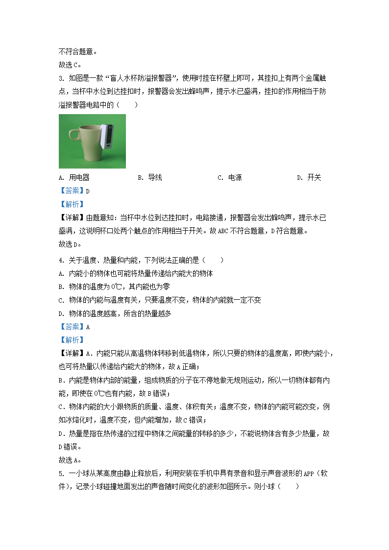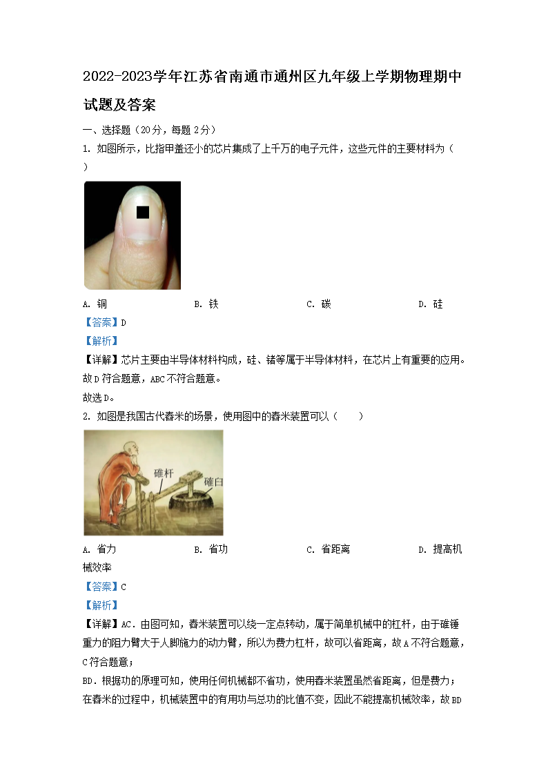 2022-2023学年江苏省南通市通州区九年级上学期物理期中试题及答案(Word版)10-13