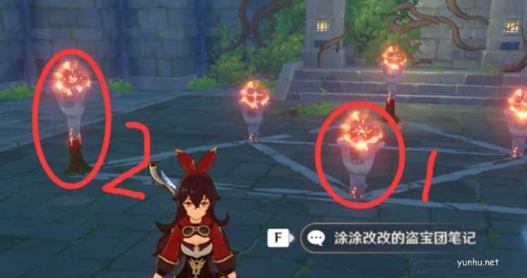 3、而爬墙需要把主角的属性换成岩属性,在岩石神像那里转换属性,拿到3个晶体钥匙以后回到圆柱。