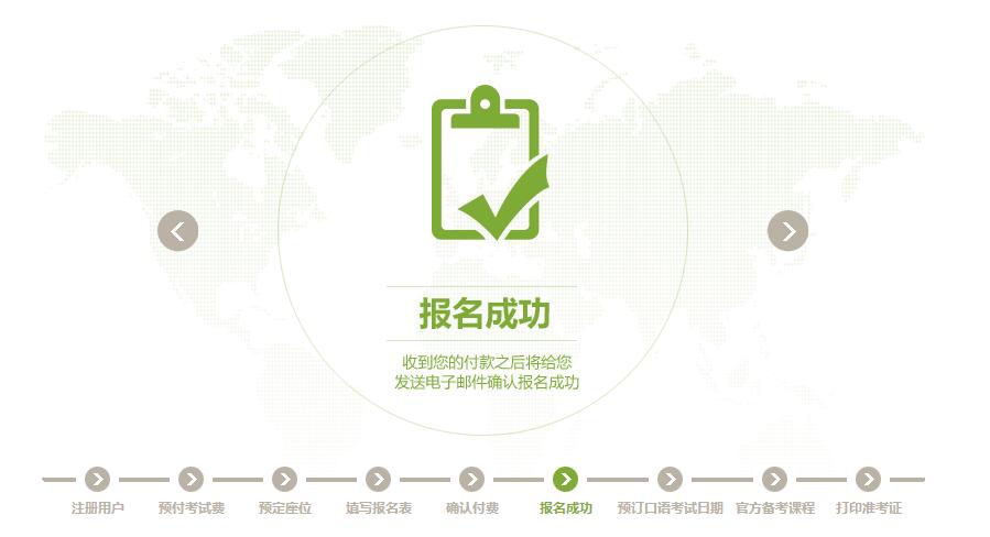 教育部考试中心雅思报名网站收到您的付款之后,将给您发送电子邮件确认报名成功。退考或转考须在考试报名截止日期前办理。
