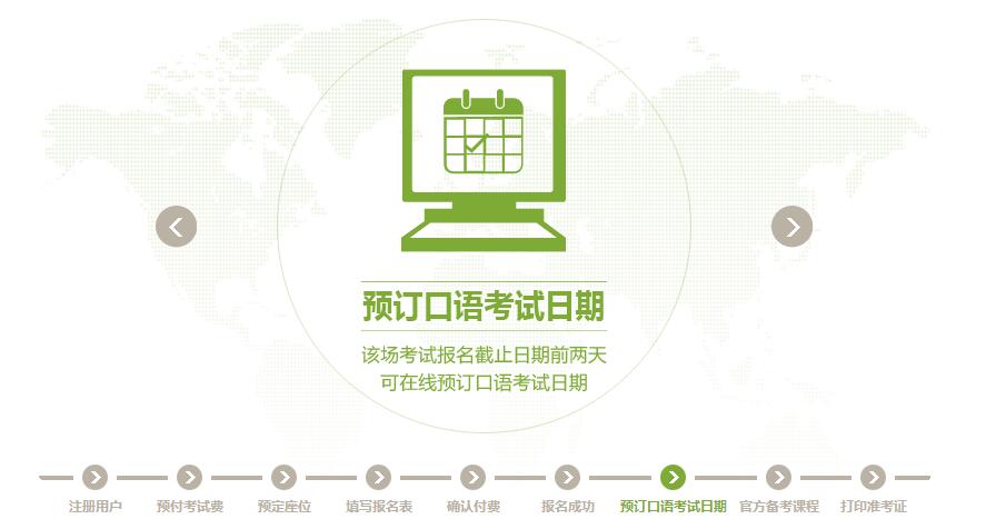成功报名雅思考试后,您可在该场考试报名截止日期前两天,登录雅思(IELTS)-中国教育考试网站"查看已注册考试"页面预定口语考试时间。