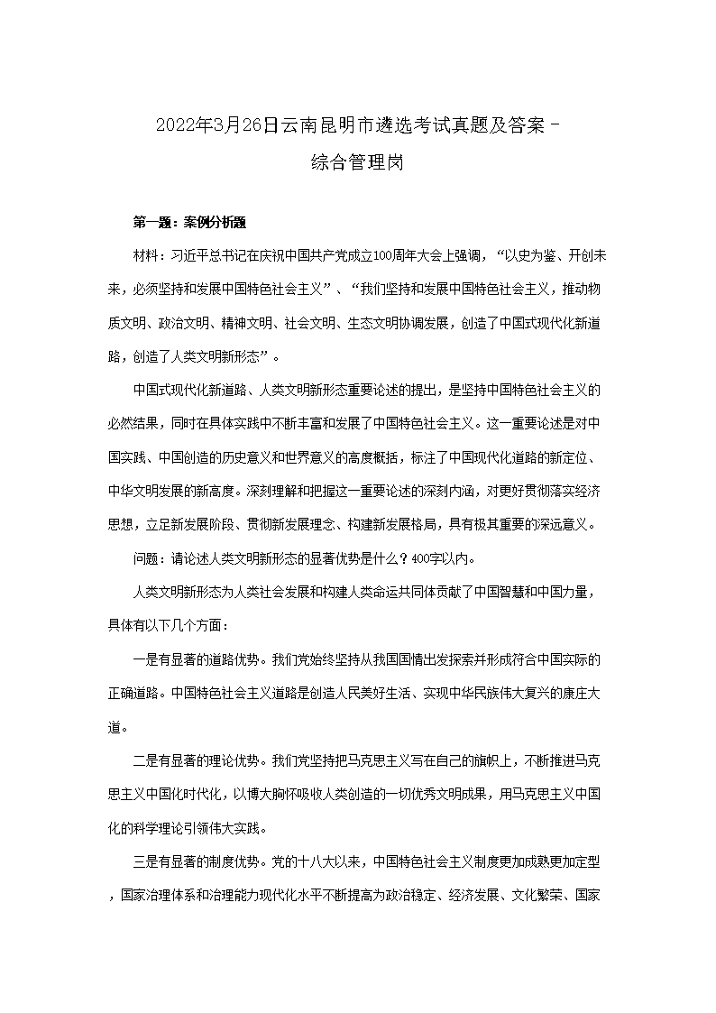 2022年3月26日云南昆明市遴选考试真题及答案-综合管理岗(Word版)06-30