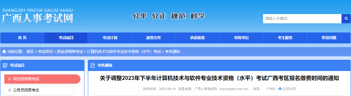 2023下半年广西计算机技术与软件专业技术资格(水平)考试报名缴费时间调整通知09-08