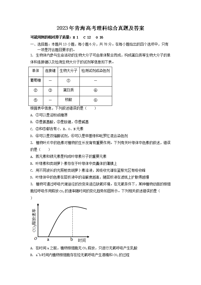 2023年青海高考理科综合真题及答案(Word版)06-16