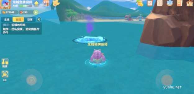 玩家可以在地图的河道中找到漩涡,这个漩涡的上面还有紫色的烟雾,只要在河道上面冲浪,就很容易找到了,这个漩涡就是灾难预言任务中的灾难漩涡。