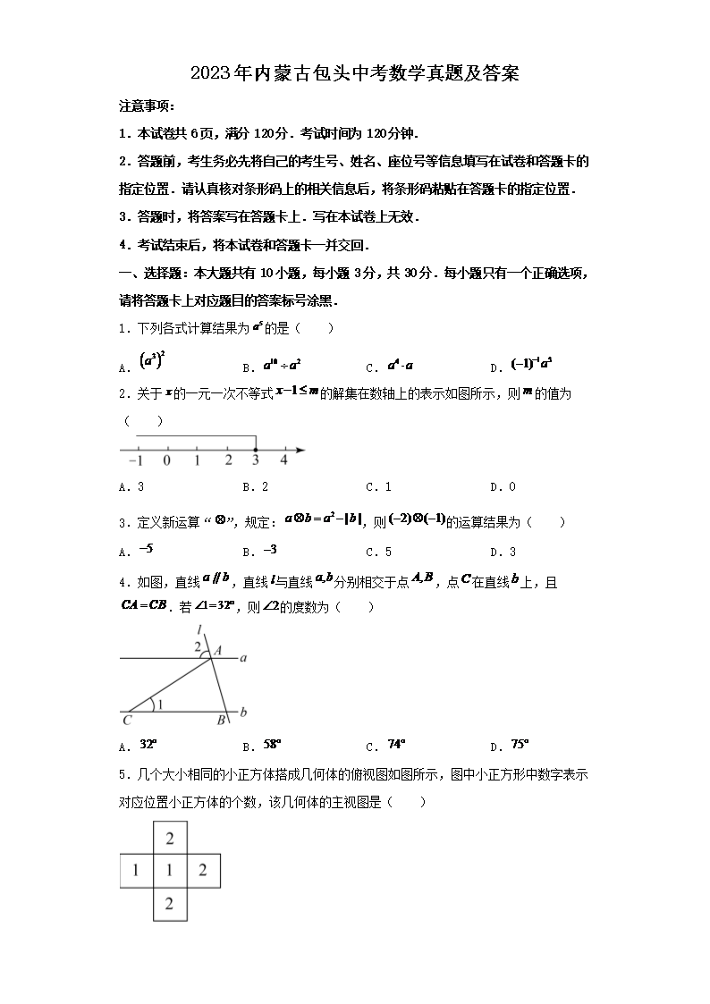 2023年内蒙古包头中考数学真题及答案(Word版)07-05
