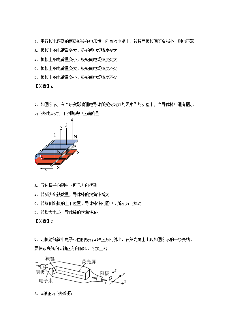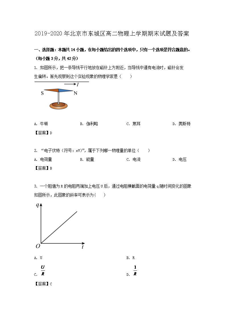 2019-2020年北京市东城区高二物理上学期期末试题及答案(Word版)06-29
