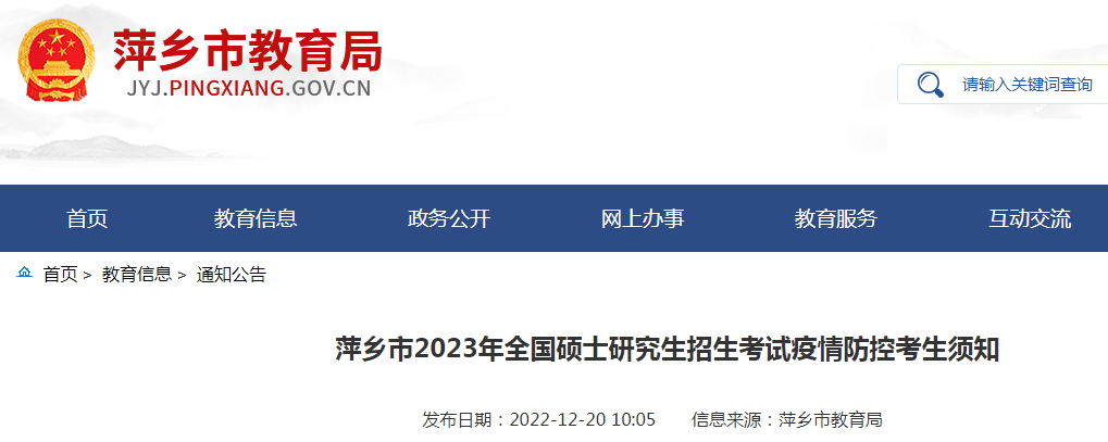 原文标题:萍乡市2023年全国硕士研究生招生考试疫情防控考生须知