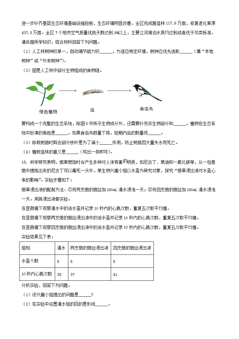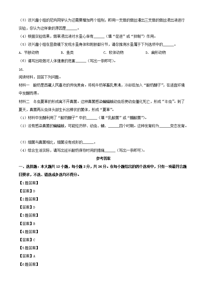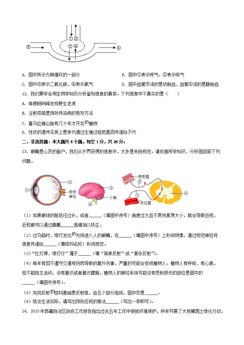 2023年西藏中考生物真题及答案(Word版)10-13