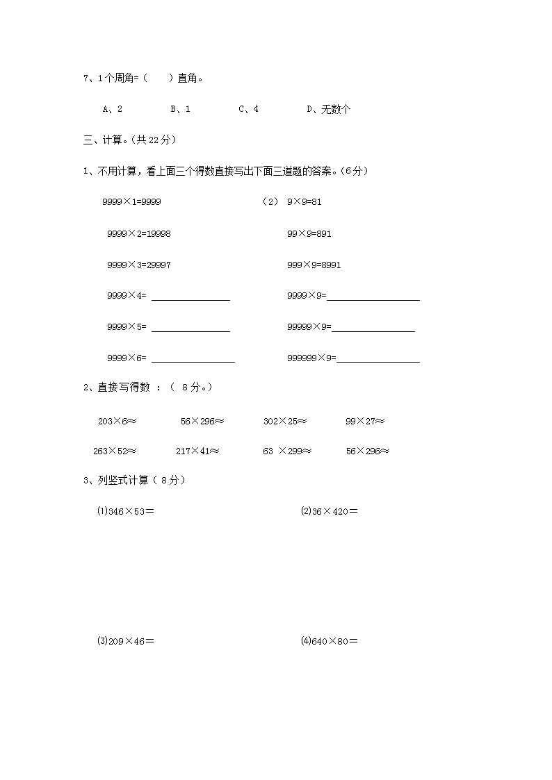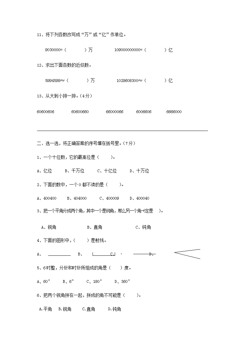 2022-2023学年浙江省金华市四年级上学期期中数学真题及答案(Word版)10-09