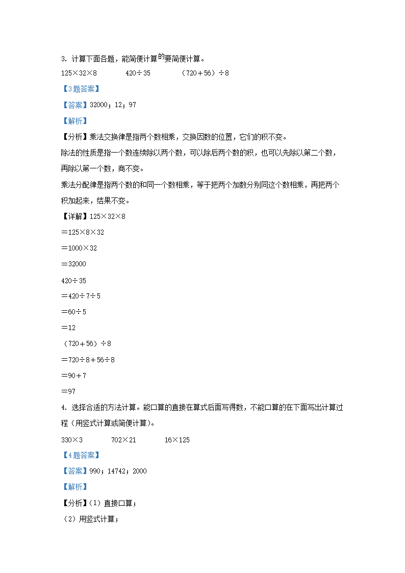 2019-2020学年江苏省常州市金坛区四年级下学期期末数学真题及答案(Word版)09-28