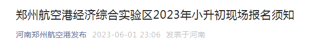 河南郑州航空港经济综合实验区2023年小升初现场报名须知06-06