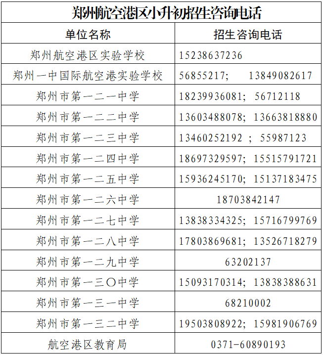 (一)航空港区小学毕业生在毕业学校报名(无需现场报名)。