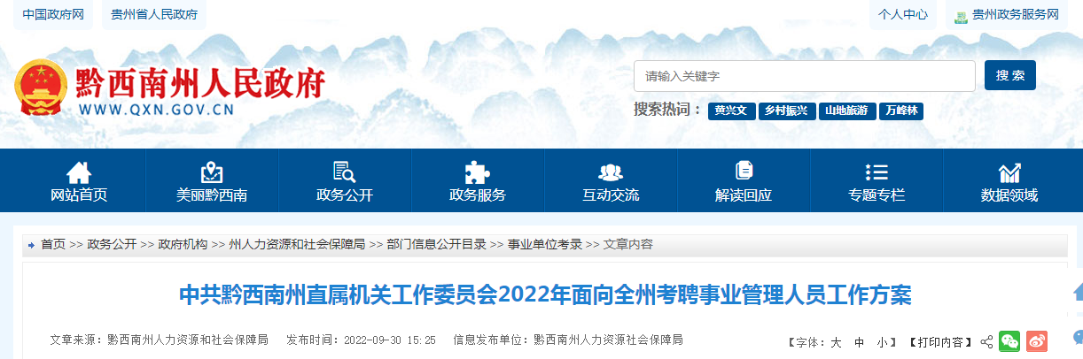 2022年贵州省中共黔西南州直属机关工作委员会面向全州考聘事业管理人员工作公告10-01