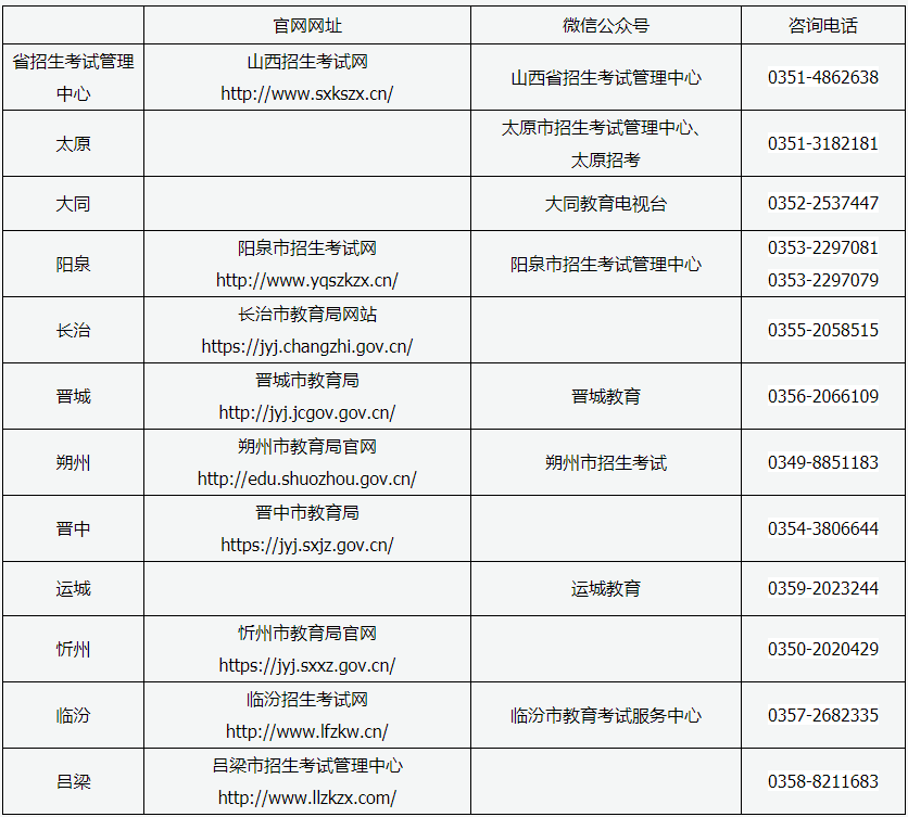 2.省、市招生考试机构网址(微信公众号)及咨询电话