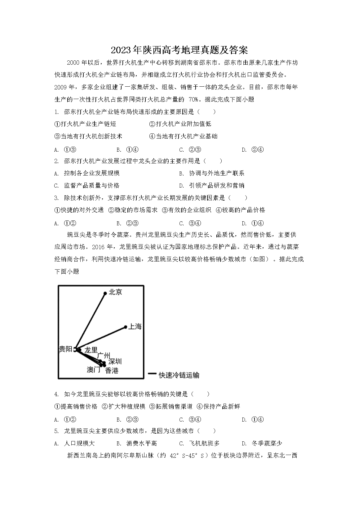 【文档预览】 文档大全网整理发布2023年陕西高考地理真题及答案(Word版),前五页预览如下: