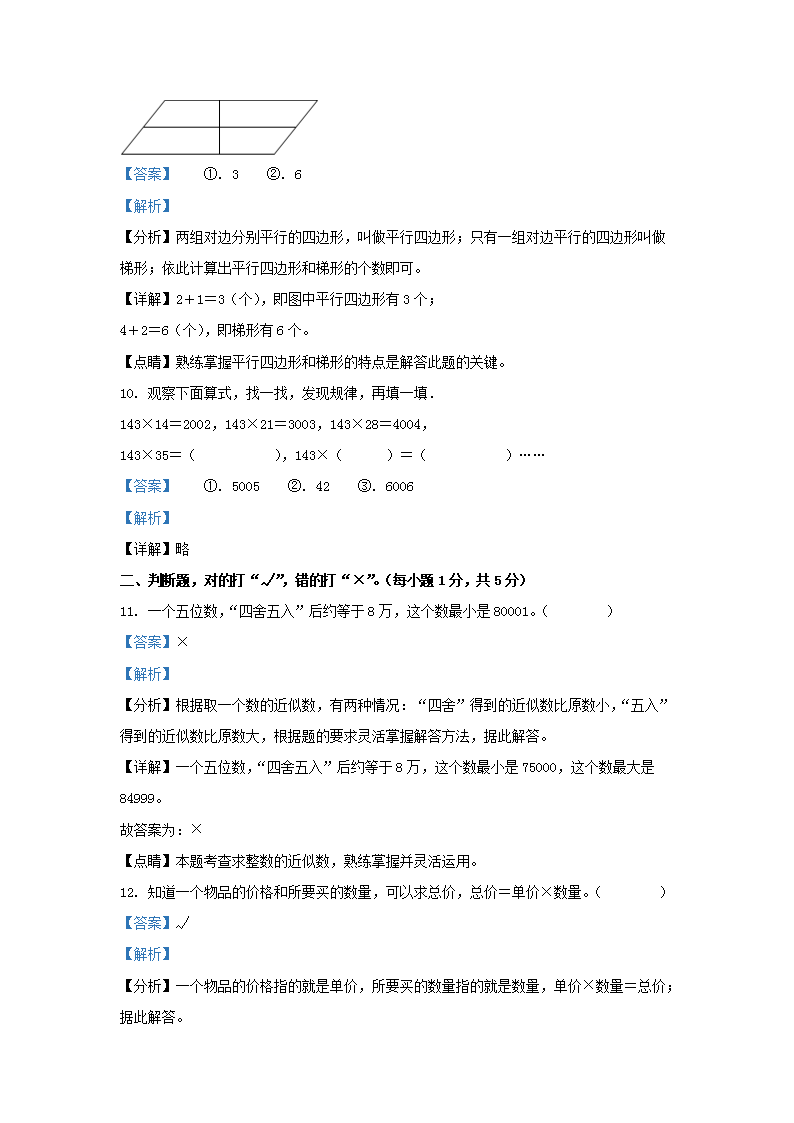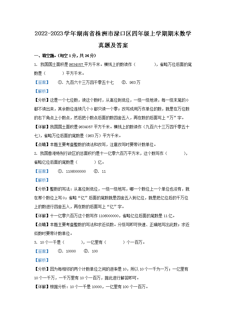2022-2023学年湖南省株洲市渌口区四年级上学期期末数学真题及答案(Word版)10-17