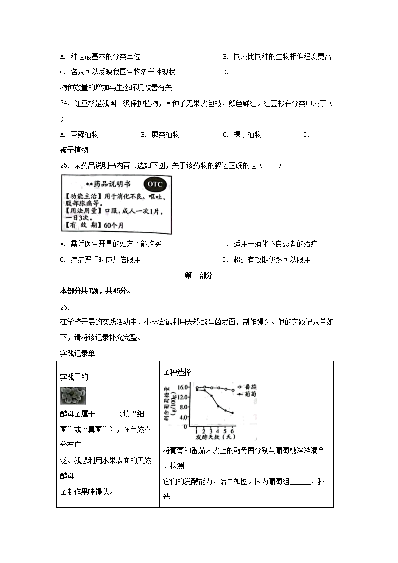 【文档预览】 文档大全网整理发布2023年北京中考生物真题及答案(Word版),前五页预览如下: