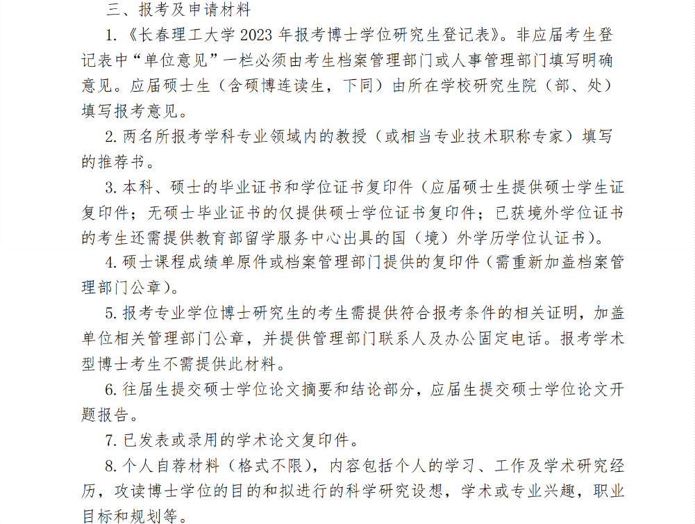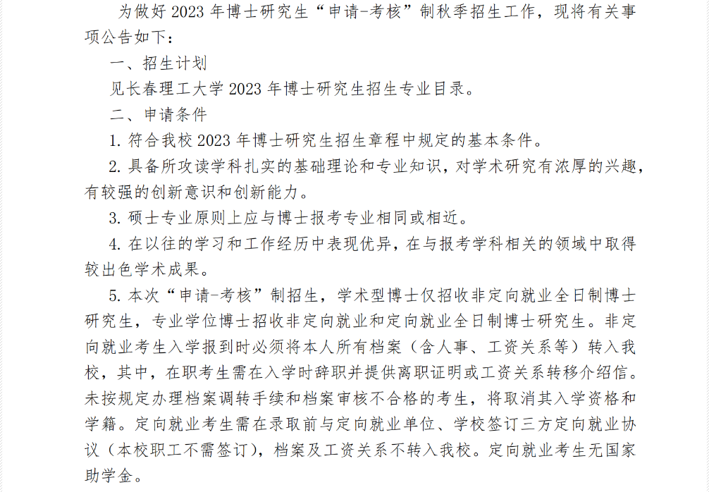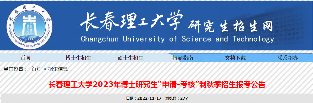吉林:长春理工大学2023年博士研究生“申请-考核”制秋季招生报考公告11-19