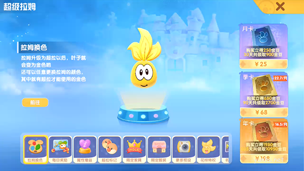 1.点击左上角的【超级拉姆】,选择购买月卡、季卡、年卡中的任意一种;